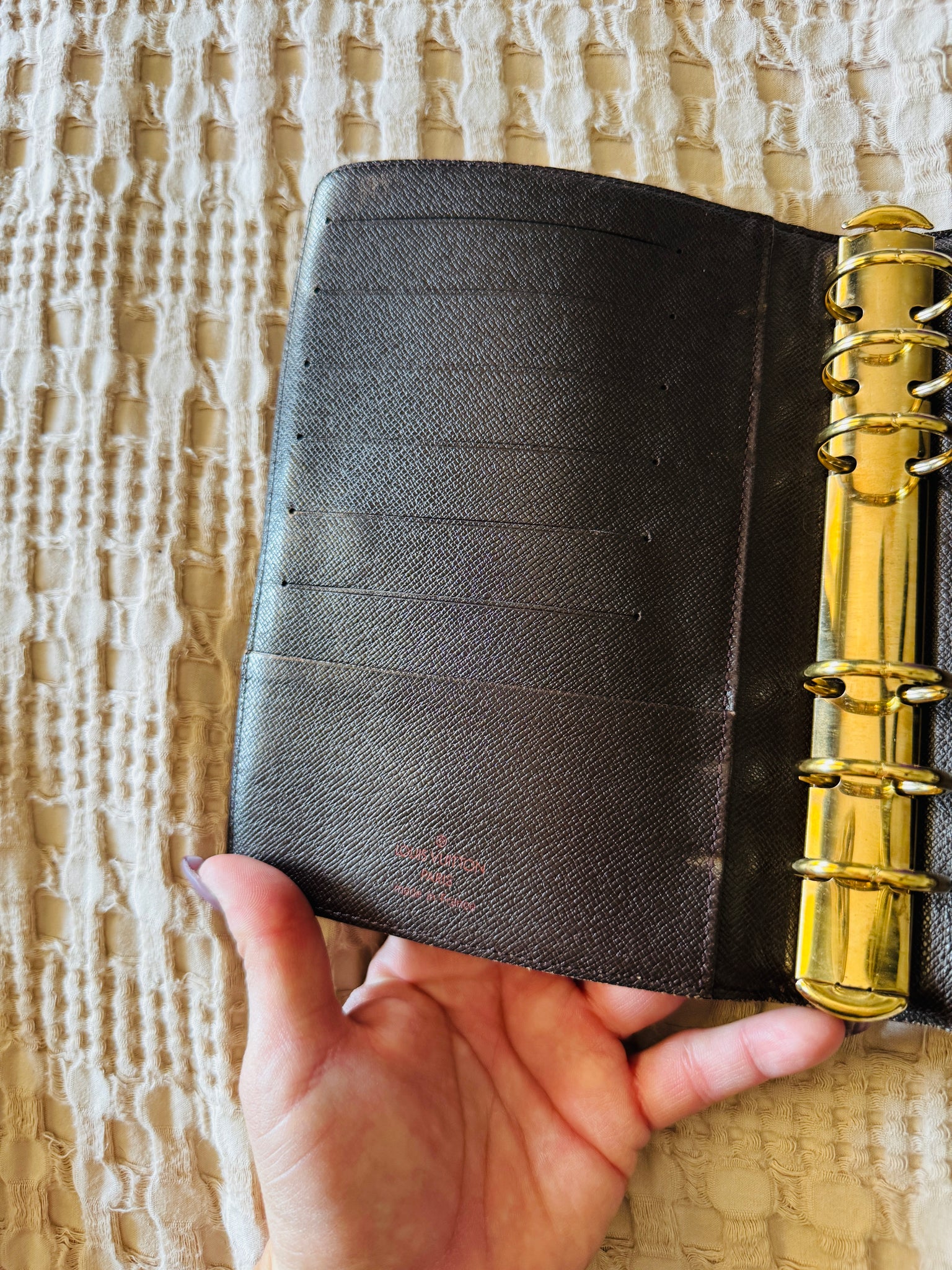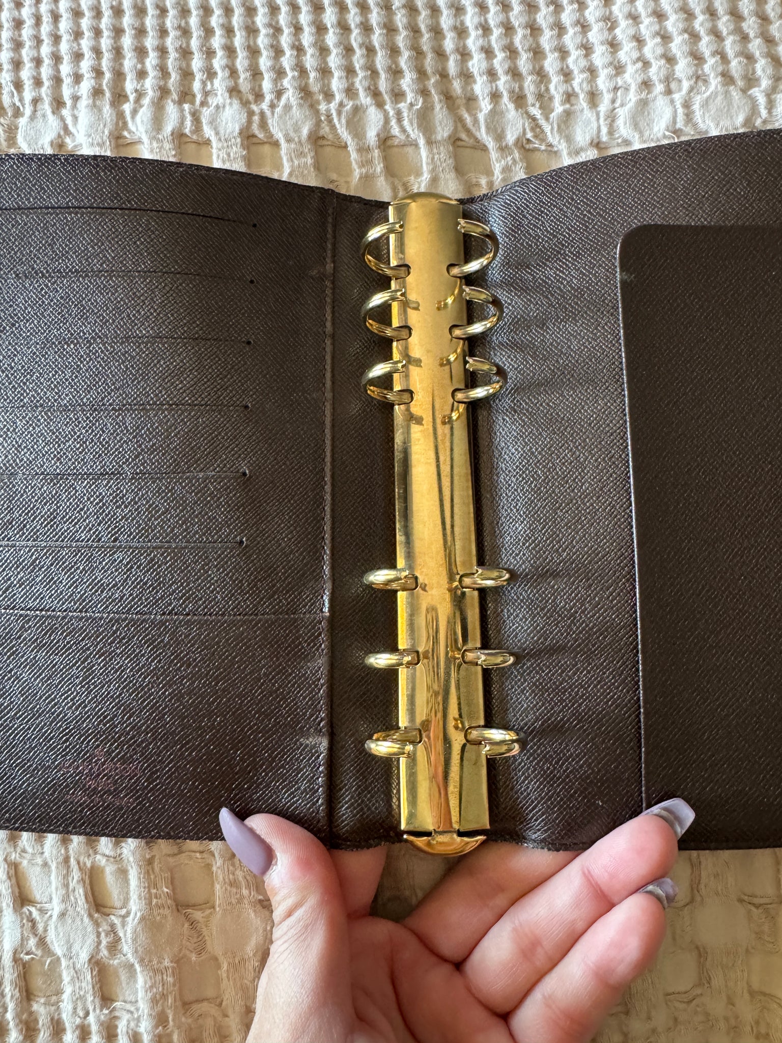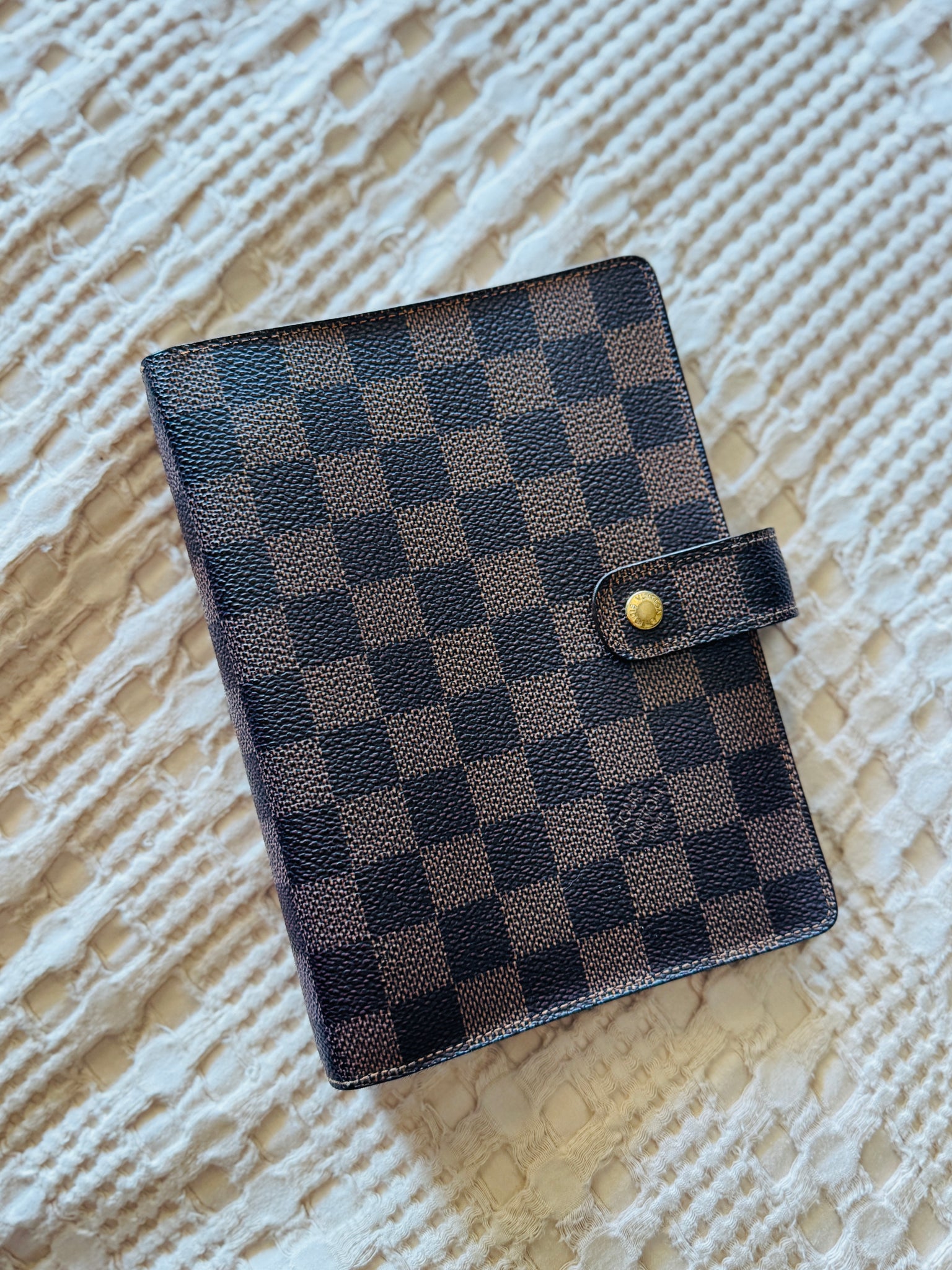 Authentic Damier ebene medium ring Agenda -no longer available in this print online! This beauty is in great condition - minor signs of normal wear. No major flaws. Absolutely no peeling or stickiness. Rings snap tight. Head on over to @the.clever.planner and get yourself some custom inserts!