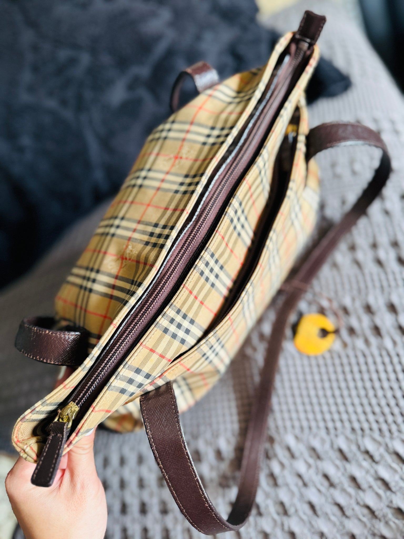 Authentic nova check tote - if you love the look and functionality of the neverfull, you’ll love this bag! This is comparable to the neverfull MM. the interior is so roomy with one large compartment, one zippered compartment inside and out outside! Zippers slides well. Clean inside and out. Corners have some rubs from use, straps have hairlines and dryness. No peeling/stickiness. Pet/smoke free.