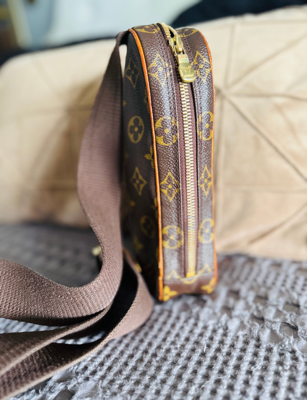 This bag is an excellent bum bag alternative due to its versatility! With the thick adjustable strap it can be worn so many ways. Clean inside and out!
