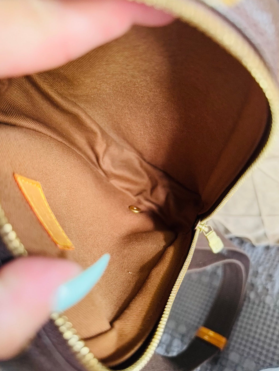 The canvas is vibrant and the Vachetta has a darkened patina with some dryness from use. Interior is clean, and the piping is intact. The zippers slide well. Hardware has tarnish. Pet/smoke free.
