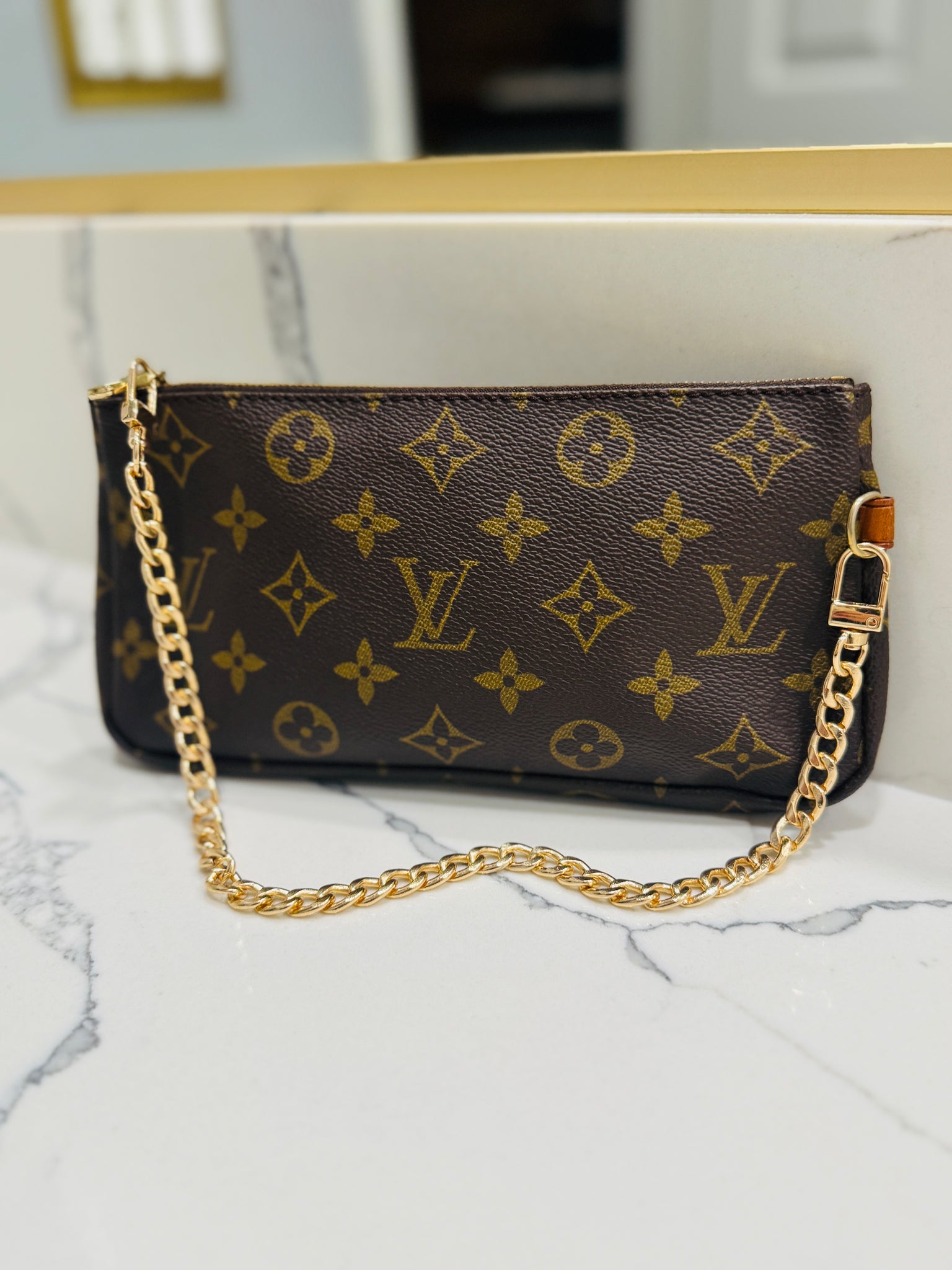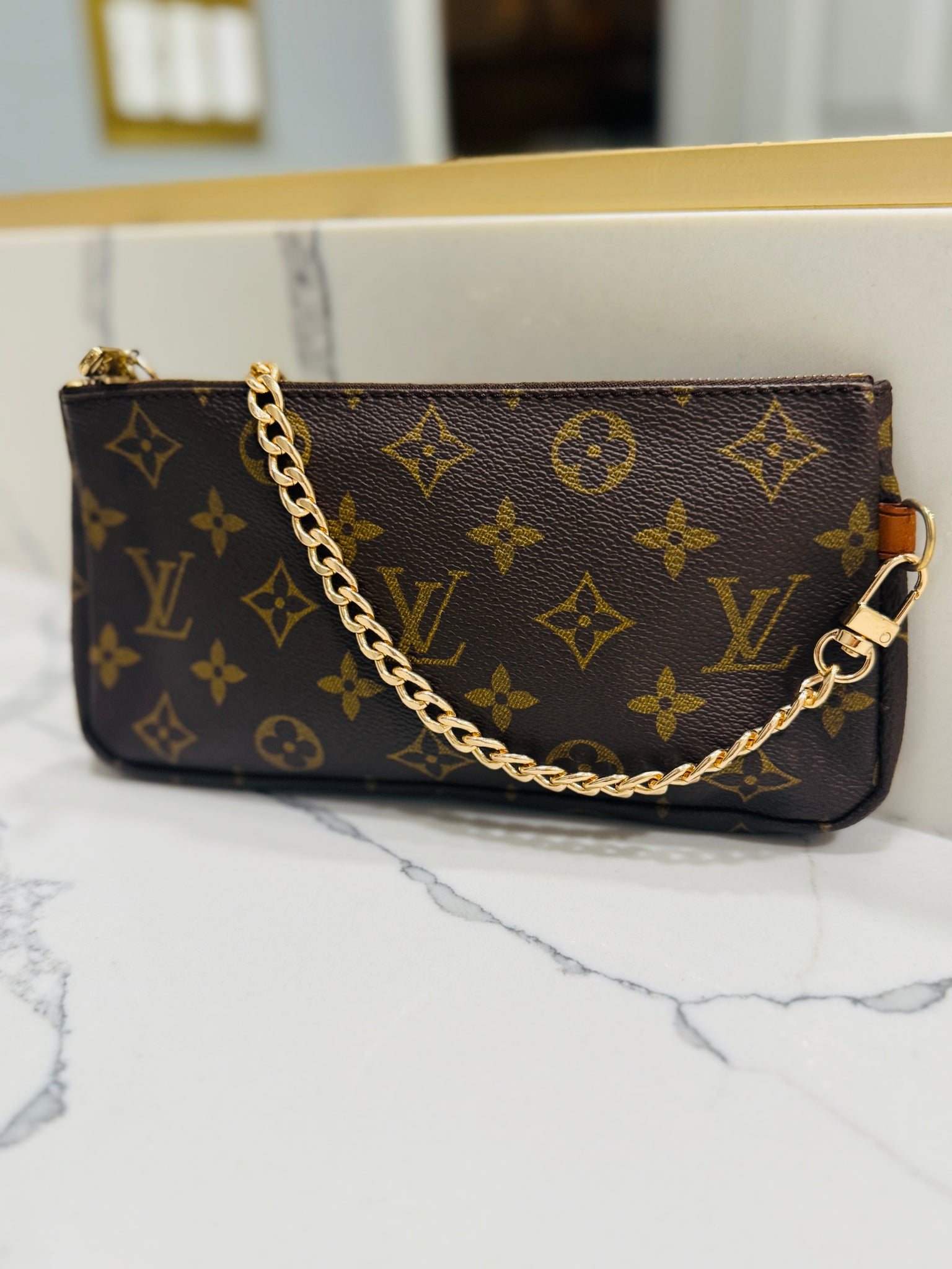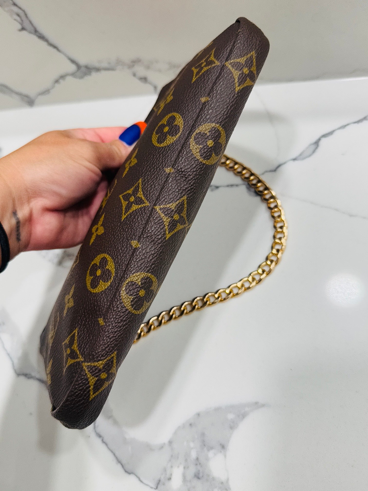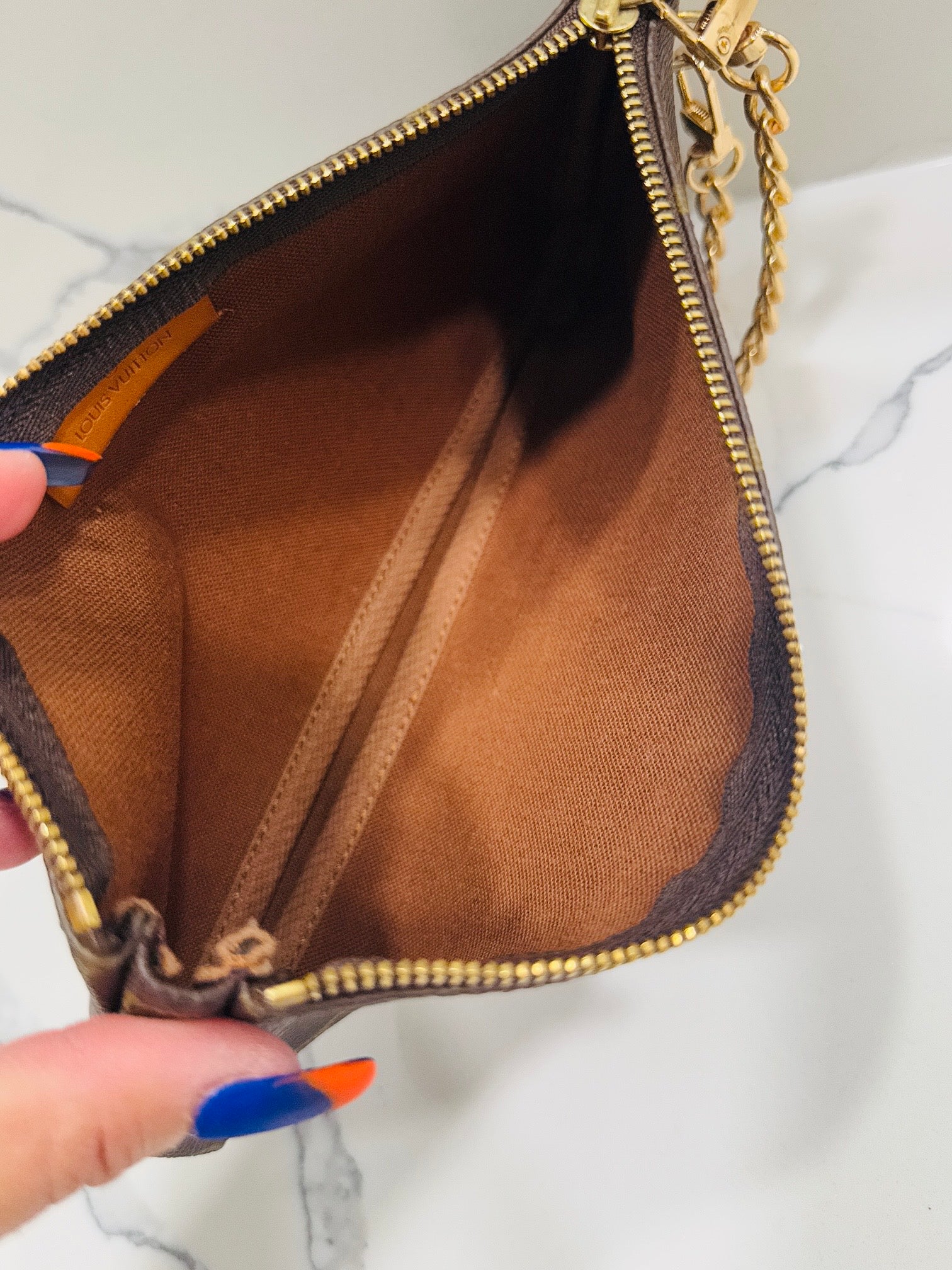 Authentic monogram sac shopping pochette - I can think of about 1000 uses for this piece! Brand new generic chain included! Can be removed and used with your other bags!Cute and handy - yes can fit phone and small compact wallet along with a few other things. Canvas is vibrant, zipper slides well and interior is clean. Pet/smoke free.